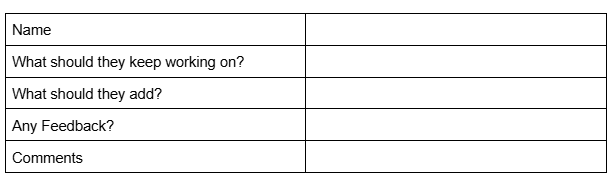For our crit session our team chose to go for a google doc table that the entire team had access to and would fill out as one of us was presenting.
