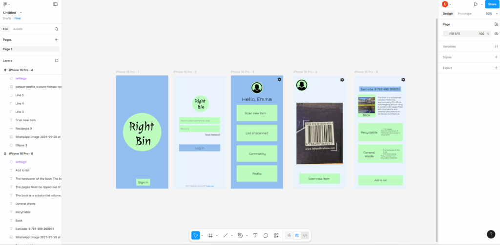 For some reason, I really struggled to get Figma to work the way I wanted it to. I didn’t find the software very intuitive, and even basic tasks like linking frames or customizing components felt frustrating and clunky.